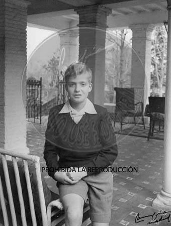 El Infante D. Juan Carlos con sus compañeros de colegio en Las Jarillas. D. Juan Carlos es fotografiado por Campúa en Las Jarillas, mientras sus compañeros observan. El Príncipe en sus habitaciones, el Príncipe en clase, el Príncipe jugando con sus compañeros.