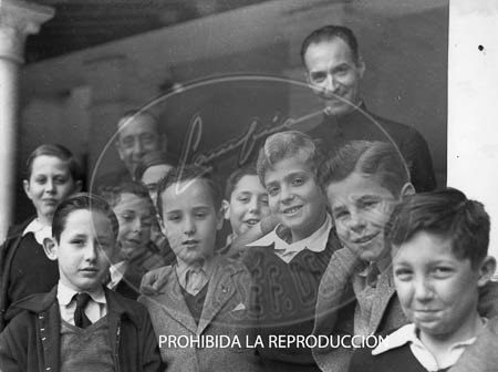 El Infante D. Juan Carlos con sus compañeros de colegio en Las Jarillas. D. Juan Carlos es fotografiado por Campúa en Las Jarillas, mientras sus compañeros observan. El Príncipe en sus habitaciones, el Príncipe en clase, el Príncipe jugando con sus compañeros.