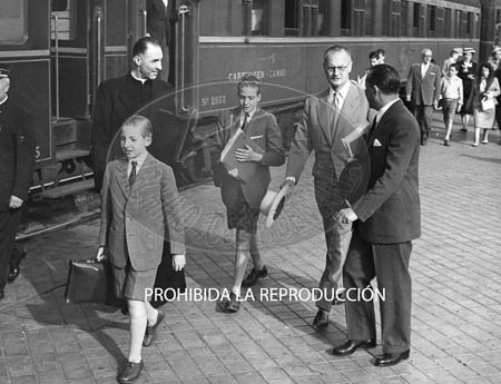 El Infante D. Juan Carlos con sus compañeros de colegio en Las Jarillas. D. Juan Carlos es fotografiado por Campúa en Las Jarillas, mientras sus compañeros observan. El Príncipe en sus habitaciones, el Príncipe en clase, el Príncipe jugando con sus compañeros.