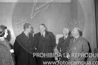 Franco, con los Príncipes de España reciben y despiden en Barajas al Rey de Grecia. Les acompañan el Ministro de Asuntos Exteriores Sr. Castiella, del Ejercito Gral. Martin Alonso, de la Gobernación Gral. Camilo Alonso Vega y del Aire Gral. Lacalle, así como el Infante D. Alfonso de Orleans.