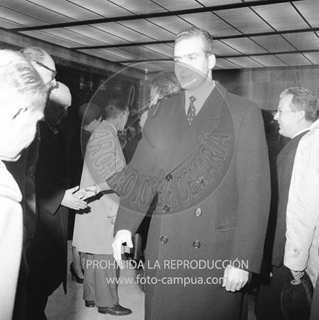 Franco, con los Príncipes de España reciben y despiden en Barajas al Rey de Grecia. Les acompañan el Ministro de Asuntos Exteriores Sr. Castiella, del Ejercito Gral. Martin Alonso, de la Gobernación Gral. Camilo Alonso Vega y del Aire Gral. Lacalle, así como el Infante D. Alfonso de Orleans.