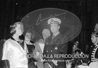 Boda de la Princesa Mª Teresa de Baviera (Tessa de Baviera) con D. Alfonso Márquez y Patiño, en San Francisco el Grande. Príncipes de España de testigos. Duquesa de Alba, Alfonso de Borbón, Gutiérrez Mellado de Coronel entre los invitados, Carrero Blanco.