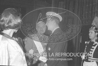 Boda de la Princesa Mª Teresa de Baviera (Tessa de Baviera) con D. Alfonso Márquez y Patiño, en San Francisco el Grande. Príncipes de España de testigos. Duquesa de Alba, Alfonso de Borbón, Gutiérrez Mellado de Coronel entre los invitados, Carrero Blanco.