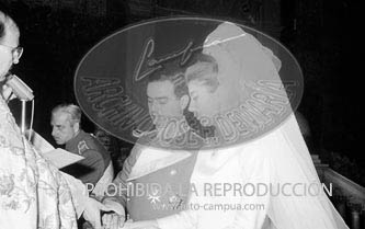 Boda de la Princesa Mª Teresa de Baviera (Tessa de Baviera) con D. Alfonso Márquez y Patiño, en San Francisco el Grande. Príncipes de España de testigos. Duquesa de Alba, Alfonso de Borbón, Gutiérrez Mellado de Coronel entre los invitados, Carrero Blanco.