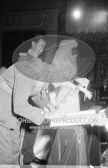 Boda de la Princesa Mª Teresa de Baviera (Tessa de Baviera) con D. Alfonso Márquez y Patiño, en San Francisco el Grande. Príncipes de España de testigos. Duquesa de Alba, Alfonso de Borbón, Gutiérrez Mellado de Coronel entre los invitados, Carrero Blanco.