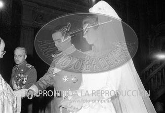 Boda de la Princesa Mª Teresa de Baviera (Tessa de Baviera) con D. Alfonso Márquez y Patiño, en San Francisco el Grande. Príncipes de España de testigos. Duquesa de Alba, Alfonso de Borbón, Gutiérrez Mellado de Coronel entre los invitados, Carrero Blanco.