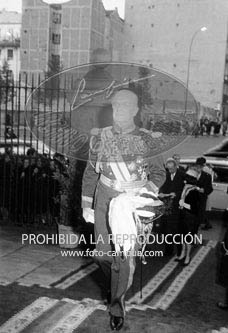 Boda de la Princesa Mª Teresa de Baviera (Tessa de Baviera) con D. Alfonso Márquez y Patiño, en San Francisco el Grande. Príncipes de España de testigos. Duquesa de Alba, Alfonso de Borbón, Gutiérrez Mellado de Coronel entre los invitados, Carrero Blanco.