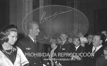 Boda de la Princesa Mª Teresa de Baviera (Tessa de Baviera) con D. Alfonso Márquez y Patiño, en San Francisco el Grande. Príncipes de España de testigos. Duquesa de Alba, Alfonso de Borbón, Gutiérrez Mellado de Coronel entre los invitados, Carrero Blanco.
