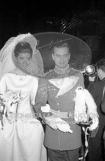 Boda de la Princesa Mª Teresa de Baviera (Tessa de Baviera) con D. Alfonso Márquez y Patiño, en San Francisco el Grande. Príncipes de España de testigos. Duquesa de Alba, Alfonso de Borbón, Gutiérrez Mellado de Coronel entre los invitados, Carrero Blanco.
