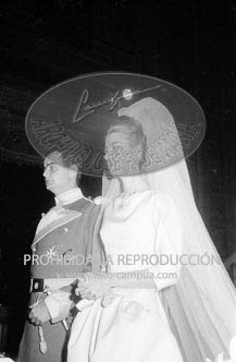 Boda de la Princesa Mª Teresa de Baviera (Tessa de Baviera) con D. Alfonso Márquez y Patiño, en San Francisco el Grande. Príncipes de España de testigos. Duquesa de Alba, Alfonso de Borbón, Gutiérrez Mellado de Coronel entre los invitados, Carrero Blanco.