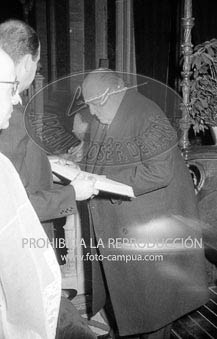 Boda de la Princesa Mª Teresa de Baviera (Tessa de Baviera) con D. Alfonso Márquez y Patiño, en San Francisco el Grande. Príncipes de España de testigos. Duquesa de Alba, Alfonso de Borbón, Gutiérrez Mellado de Coronel entre los invitados, Carrero Blanco.