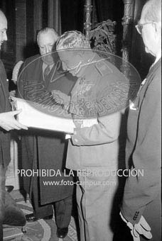 Boda de la Princesa Mª Teresa de Baviera (Tessa de Baviera) con D. Alfonso Márquez y Patiño, en San Francisco el Grande. Príncipes de España de testigos. Duquesa de Alba, Alfonso de Borbón, Gutiérrez Mellado de Coronel entre los invitados, Carrero Blanco.
