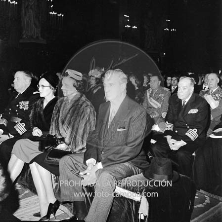 Boda de la Princesa Mª Teresa de Baviera (Tessa de Baviera) con D. Alfonso Márquez y Patiño, en San Francisco el Grande. Príncipes de España de testigos. Duquesa de Alba, Alfonso de Borbón, Gutiérrez Mellado de Coronel entre los invitados, Carrero Blanco.