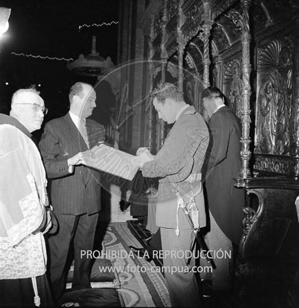 Boda de la Princesa Mª Teresa de Baviera (Tessa de Baviera) con D. Alfonso Márquez y Patiño, en San Francisco el Grande. Príncipes de España de testigos. Duquesa de Alba, Alfonso de Borbón, Gutiérrez Mellado de Coronel entre los invitados, Carrero Blanco.