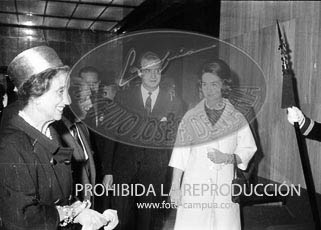 Los Príncipes de España D. Juan Carlos y Dª Sofía, con el Caudillo y su esposa, reciben al Rey Constantino de Grecia en Barajas. D. Juan Carlos besando la mano a Dª Carmen.
