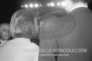 Los Príncipes de España D. Juan Carlos y Dª Sofía, con el Caudillo y su esposa, reciben al Rey Constantino de Grecia en Barajas. D. Juan Carlos besando la mano a Dª Carmen.