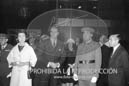 Los Príncipes de España D. Juan Carlos y Dª Sofía, con el Caudillo y su esposa, reciben al Rey Constantino de Grecia en Barajas. D. Juan Carlos besando la mano a Dª Carmen.