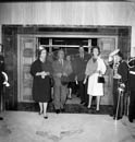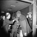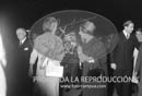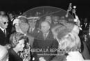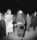 Los Príncipes de España D. Juan Carlos y Dª Sofía, con el Caudillo y su esposa, reciben al Rey Constantino de Grecia en Barajas. D. Juan Carlos besando la mano a Dª Carmen.