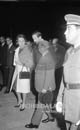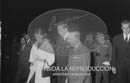 Los Príncipes de España D. Juan Carlos y Dª Sofía, con el Caudillo y su esposa, reciben al Rey Constantino de Grecia en Barajas. D. Juan Carlos besando la mano a Dª Carmen.