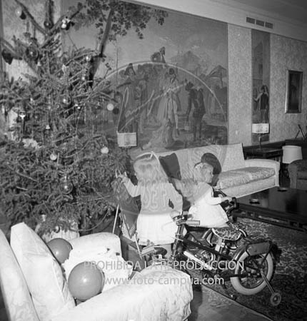 En el Palacio de La Zarzuela, los Príncipes de España D. Juan Carlos y Dª Sofía, pasan las fiestas navideñas en compañía de sus hijas.
