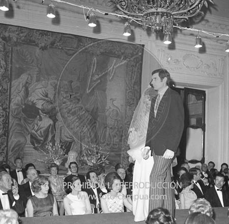 La Princesa de España Dª Sofía, acompañada del Infante D. Alfonso de Borbón Dampierre asiste a un desfile de modelos en la embajada de Italia.