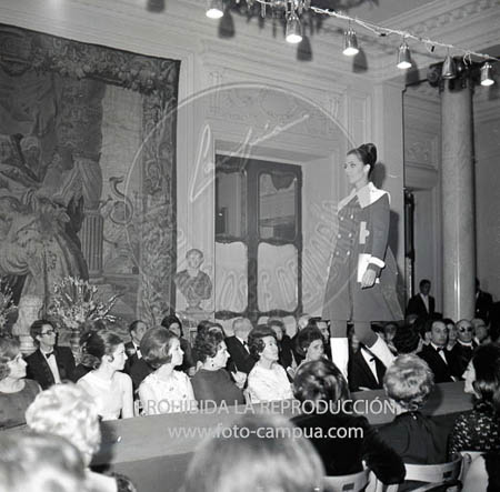 La Princesa de España Dª Sofía, acompañada del Infante D. Alfonso de Borbón Dampierre asiste a un desfile de modelos en la embajada de Italia.