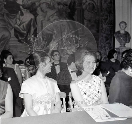 La Princesa de España Dª Sofía, acompañada del Infante D. Alfonso de Borbón Dampierre asiste a un desfile de modelos en la embajada de Italia.