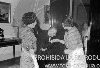 La Princesa de España Dª Sofía, acompañada del Infante D. Alfonso de Borbón Dampierre asiste a un desfile de modelos en la embajada de Italia.