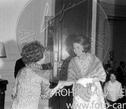 La Princesa de España Dª Sofía, acompañada del Infante D. Alfonso de Borbón Dampierre asiste a un desfile de modelos en la embajada de Italia.
