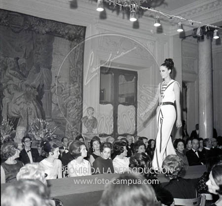 La Princesa de España Dª Sofía, acompañada del Infante D. Alfonso de Borbón Dampierre asiste a un desfile de modelos en la embajada de Italia.