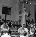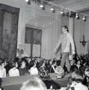 La Princesa de España Dª Sofía, acompañada del Infante D. Alfonso de Borbón Dampierre asiste a un desfile de modelos en la embajada de Italia.