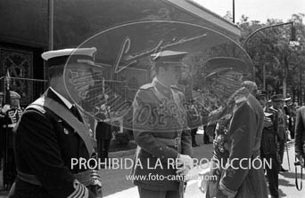 Franco con el Príncipe, presiden el Desfile de la Victoria. El Rey Simeón de Bulgaria en la tribuna con el Infante D. Alfonso de Borbón de uniforme de Alférez de la Milicia Aérea Universitaria. El Príncipe con el Almirante Carrero Blanco