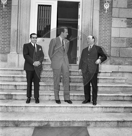 El Príncipe D. Juan Carlos recibe al Profesor D. Agustín Pedro Pons y al Doctor Flórez Tascón en el Palacio de La Zarzuela