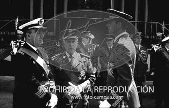 El Caudillo y el Príncipe D. Juan Carlos presiden el XXXI Desfile de la Victoria.