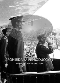 El Caudillo y el Príncipe D. Juan Carlos presiden el XXXI Desfile de la Victoria.