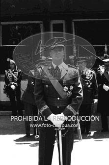 El Caudillo y el Príncipe D. Juan Carlos presiden el XXXI Desfile de la Victoria.