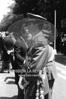 El Caudillo y el Príncipe D. Juan Carlos presiden el XXXI Desfile de la Victoria.