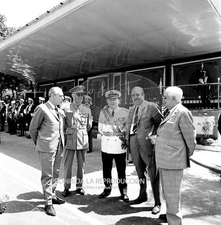 El Caudillo y el Príncipe D. Juan Carlos presiden el XXXI Desfile de la Victoria.