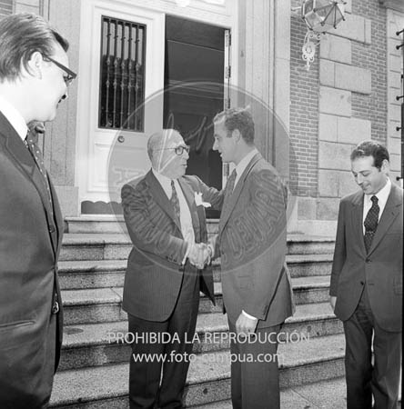 El Príncipe en el Palacio de la Zarzuela concede una entrevista a los periodistas. Asiste D. Alberto Fondevila