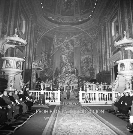 Misa por la Inmaculada en San Francisco El Grande con la asistencia del Caudillo, Dª Carmen, los Príncipes de España, miembros del Gobierno y otras personalidades