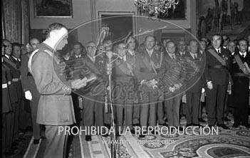 El Príncipe D. Juan Carlos acompaña al Caudillo en la recepción con motivo de la Pascua Militar