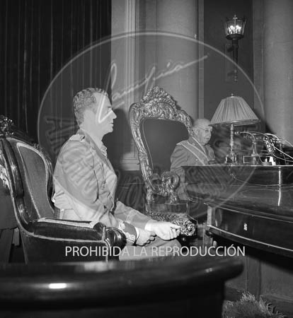 El Príncipe de España con el Caudillo en la inauguración de la cámara del Consejo Nacional del Movimiento.