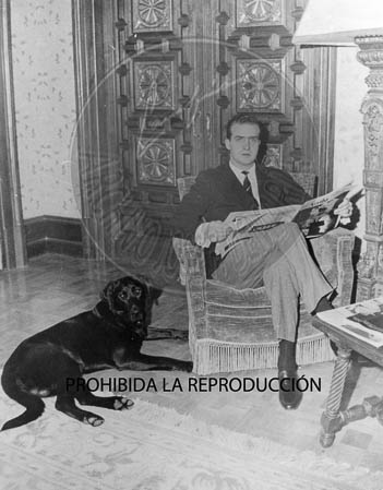 D. Juan Carlos en La Zarzuela, junto a su perro, leyendo el diario "Arriba"