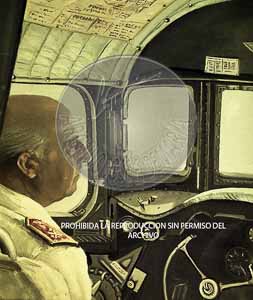 Franco en la cabina de un avión Azor