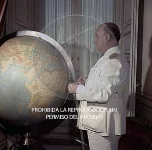 Franco en El Pardo con el Globo terraqueo, 1957