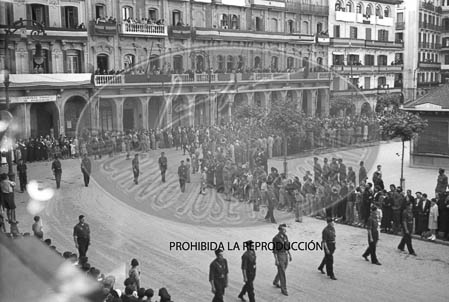 Entierro Gral. Emilio Mola Vidal. El General Garcia Valiño y Milán Astray abren el cortejo funebre