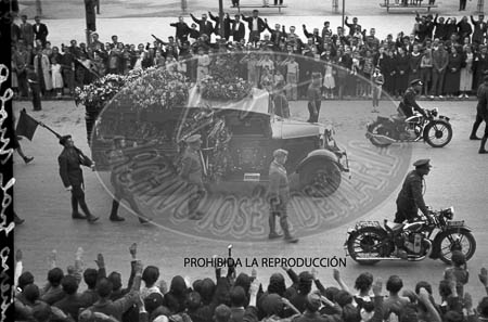 Entierro Gral. Emilio Mola Vidal. El General Garcia Valiño y Milán Astray abren el cortejo funebre