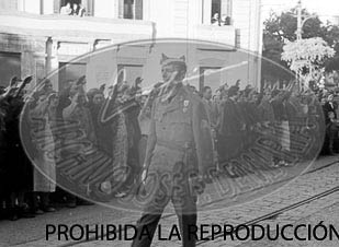 Entierro Gral. Emilio Mola Vidal. El General Garcia Valiño y Milán Astray abren el cortejo funebre
