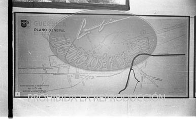 Carteles explicativos de los planes de reconstrucción de Guernica.