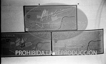 Carteles explicativos de los planes de reconstrucción de Guernica.